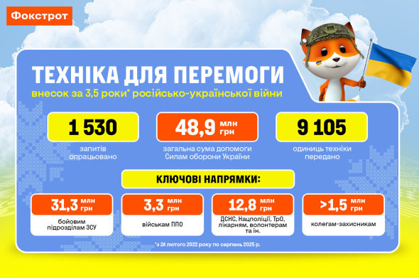 В компании добавляют, что поддержка военных от Фокстрот будет продолжаться до полной Победы Украины.