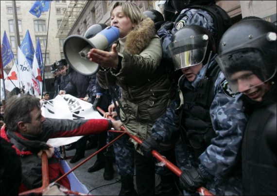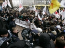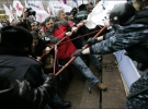 Как сообщили в Центре общественных связей УМВД Украины в Киеве, этот человек в ходе проведения акции протеста пытался прорваться через турникеты охраны в здание КГГА, совершив сопротивление сотрудникам милиции.
