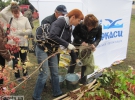 В 16.30 приходит Сергей Отрешко. Сразу берется за лопату. К нему подходит Анна, 27 лет, с кустом калины. Девушки, стоящие рядом, насыпают специальный грунт на торфяной основе. Депутат сажает первый куст.