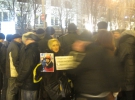 Простояв 15 минут в агрессивном окружении, евромайдановцы выбрались из толпы и отошли в сторону. Они держали портреты погибшего Сергея Нигояна. Сторонники ПР взяли оппонентов в плотное кольцо. Уже знакомые по прежним дням титушки держали мегафоны. Активисты Евромайдана исполняли гимн, а титушки кричали: "Геть с майдана!" и вырывали плакаты. Из-за этого завязалась потасовка.
