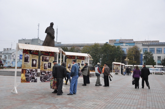 На площади Независимости в Ровно с 10-ти часов утра продолжается инсталяцию под открытым небом - "Откройте свои сердца". Это выставка черно-белых фотографий украинских повстанцев и репродукции картин местной художницы Натальи Серветник, приуроченная к 70-летию создания Украинской повстанческой армии. Этот день совпадает с праздником Покрова 14 октября.