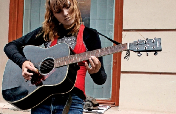23-летняя франковчанка Габриэль, настоящее имя скрывает, три года назад поссорилась с родителями и отправилась путешествовать. На жизнь зарабатывает выступлениями на улицах городов. Шестиструнную акустическую гитару Yamaha подарил крестный. Пением заработала на мотоцикл. Рассказала, какие песни у нее ассоциируются с украинскими городами.