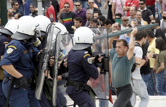 - Столкновения десятков демонстрантов с полицией произошли 5 мая в центре Афин у здания парламента. По данным полиции, около 60 демонстрантов атаковали кордон спецназа. В стражей порядка полетели камни и бутылки с водой, полицейские в ответ применили слезоточивый газ.