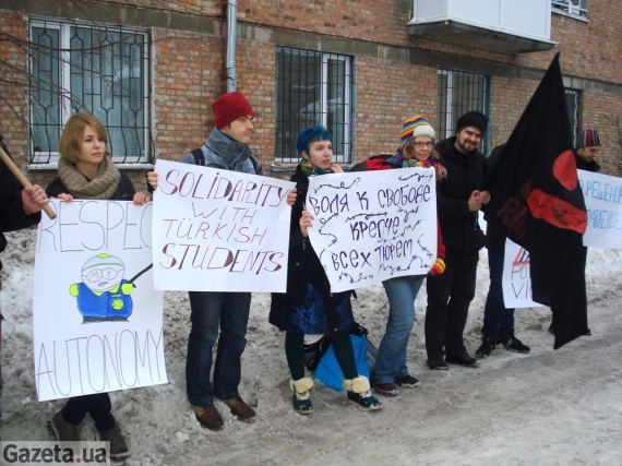 Примерно 15 киевских студентов 26 декабря в 15.15 пикетируют Посольство Турции в Украине. Они требуют прекратить репрессии турецкой полиции против тамошних студентов.