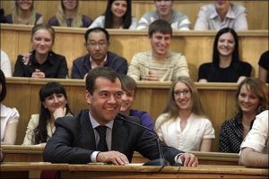 Студенты поинтересовались у Медведева, тяжело ли быть президентом, он честно признался, что "тяжело, но интересно".