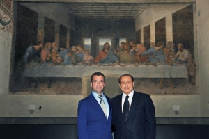 Медведев прибыл в Милан с кратким официальным визитом в минувшую пятницу, 23 июля. Берлускони показывал высокому гостю доминиканский монастырь Санта-Мария делле Грацие, в трапезной которого находится фреска Леонардо. Туристы, которые заранее бронировали посещение трапезной, вынуждены были пропустить вперед Берлускони и Медведева. Возможности рассмотреть шедевр итальянского гения люди ждут по три месяца.