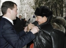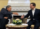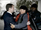 Побеседовав чуть менее часа в резиденции, главы государств отправились на прогулку. В парке резиденции среди разведенных костров был приготовлен самовар и накрыт небольшой столик с традиционными русскими соленьями и шашлыком, а также обещанным российским президентом салом. Gazeta.ua
