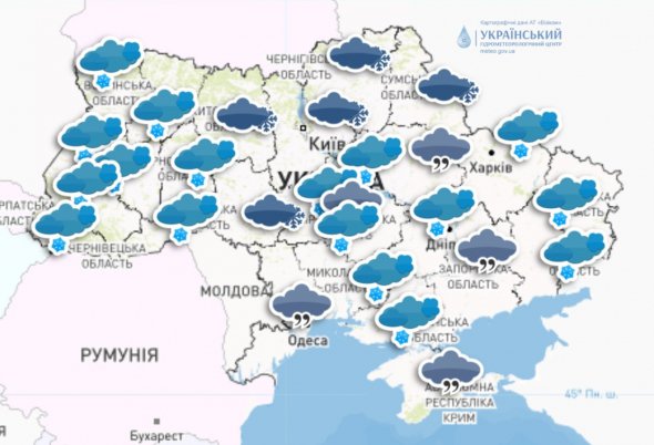 Ветер северный, 5-10 м/с. Температура воздуха днем по области -2...+3℃, в Киеве около 0℃.