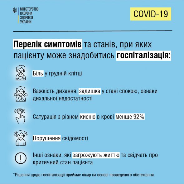 "Не откладывайте заботу о здоровье на "после праздников". Ознакомьтесь с перечнем симптомов, которые свидетельствуют о том, что вам или близким может понадобиться госпитализация при Covid-19. Однако заметьте, что врач примет решение о необходимости госпитализации уже после обследования", - говорится в сообщении.