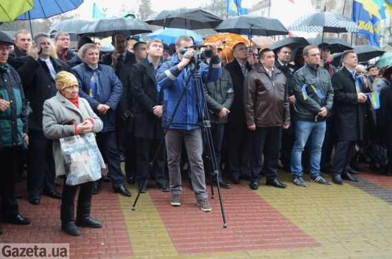 Накануне он встретился с молодежными активистами и студентами, договаривались, что мероприятие пройдет без партийной символики. Несмотря на это площадь изобилует флагами оппозиционных партий. Сессия приняла обращение к руководству государства с требованиями принять евроинтеграционные законопроекты и подписать соглашение об ассоциации с ЕС. Молодежный мэр Тернополя пластун Любомир Шимкив подходит к микрофону и неожиданно падает вместе со стойкой, как подкошенный.