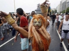 Люди, одетые в разноцветные костюмы, растянули гигантский флаг с изображением радуги в знак протеста против гомофобии, предрассудков и насилия, совершаемого против гей-сообщества, сообщает NDTV.