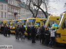 На площади перед стенами Львовской государственной обладминистрации 15 декабря состоялось вручение 13 школьных автобусов районам области.