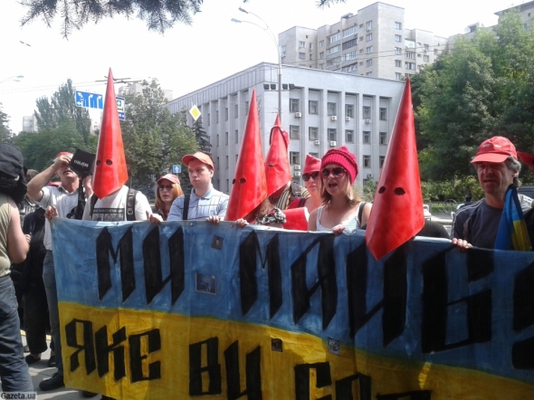 Два десятка активистов прошлись от метро "Арсенальная" в Печерское отделение милиции в красных шапочках. Как объяснили, несколько дней назад милиция провела обыски у нескольких активистов в рамках расследования дела по заброса снежками депутатов от Партии регионов под Верховной Радой 2 апреля. Во время обысков правоохранители искали красную шапку, в которой якобы был одет один из виновников происшествия. Однако пока они ничего не нашли.