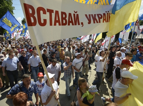 Люди держали плакаты "Вставай, Украина!", Национальные и партийные флаги. Охраняли митинг около 200 правоохранителей, еще сотня - в запасе. Вместе с тем в "Свободе" отметили, что в марше оппозиционных сил приняли участие около 8 тысяч участников.