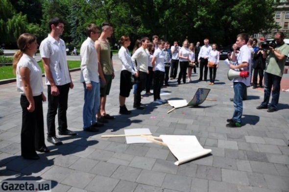 Перед главным корпусом Львовского национального университета имени Ивана Франко общественная организация "Отпор" провела театрализованную акцию против министра образования Дмитрия Табачника.