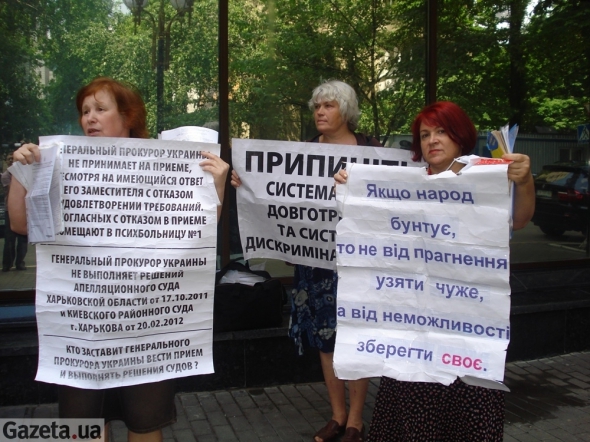 С десяток человек пикетировали Генеральную прокуратуру из-за нарушения прав приема граждан генпрокурором. В результате на приеме генеральным прокурором Виктором Пшонкой посетителей час не выпускали из помещения ГПУ, не объясняя причины задержания.