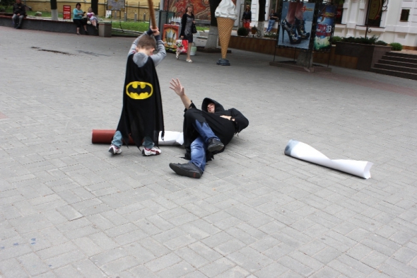 Во всемирный день борьбы с курением в Виннице местные активисты провели мини-спектакль, таки образом призывая людей не употреблять табак. В сквере имени Козицкого актеров-любителей одели в смерть с гигантской сигаретой и у маленького "Бэтмена". Во время борьбы, маленький спаситель мира преодолел "смертоносца" и разорвал тлеющую сигарету. "Бэтмена" сыграл четырехлетний Андрей Капитан.