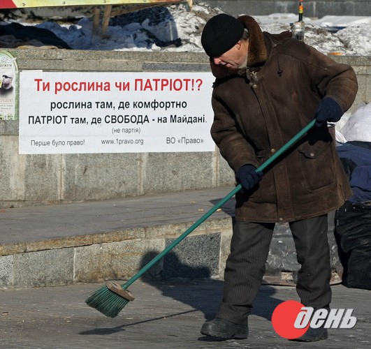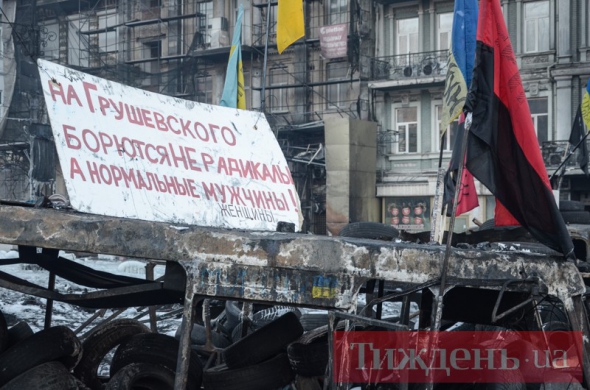 На Грушевского тем временем спокойно, евромайдановцы устроили "генеральную уборку" центра столицы.