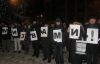 Несколько десятков студентов собрались на Тещином мосту. Молодые люди замотались во флаги Украины и пели национальный гимн, пока "власть-палач" не заклеила им рты. По словам участника акции Ивана Вышитого, который играл роль "палача", данный законопроект в первую очередь направлен против мирных собраний.