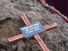На траурную церемонию пришло несколько десятков горожан - чиновники, волонтеры, военные и активисты. Начали с минуты молчания. После прощальной панихиды все желающие возложили цветы на могилу с безымянной табличкой.