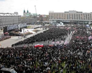 Траурное торжество по погибшим в авиакатастрофе президентского самолета состоялось в Варшаве на площади Пилсудского около могилы неизвестного солдата. Весь центр столицы Польши заполнили люди. Польские скауты, гарцеры, разносили людям воду. В Варшаве целый день бесплатно работает общественный транспорт - автобусы, трамваи, метро. В центре по меньшей мере полмиллиона человек, говорят очевидцы.