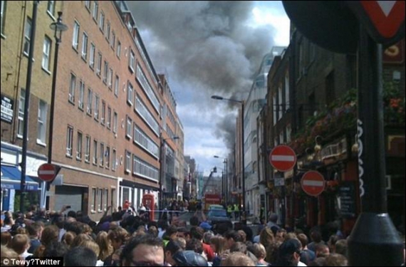 Пожар на улице Дин-стрит в центре Лондона, парализовавший движение на близлежащих улицах города, локализован, на месте происшествия остаются более 100 пожарных.