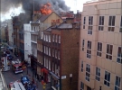 Первоначально вспыхнул подвал, однако вскоре возгорание охватило все четырехэтажное строение, и пламя перекинулось на два соседних дома.