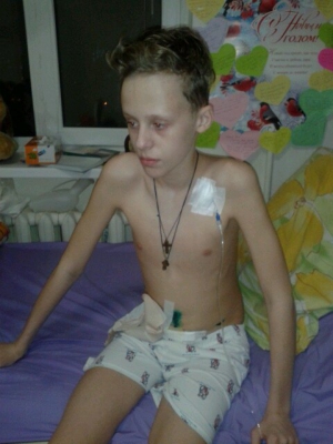 "Ваня год назад начал служить в церкви. В декабре пожаловался, что болит желудок. Перед этим переболел гриппом. 23 декабря ему стало плохо, вызвали скорую помощь. Врачи заподозрили аппендицит. Во время операции обнаружили огромную опухоль, размером с литровую банку. Сразу поняли, что это онкология. Прямую кишку пришлось вывести через живот. Были проблемы с заживлением раны. Поэтому после первого блока химиотерапии состояние Вани ухудшилось. Ребенок терял вес. При росте почти 1,8 метра он весил 47 килограмм. Врачи никакой надежды не давали.