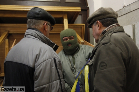"Я уверен, что именно отсюда начнется восстановление легитимной власти в Киеве. Если в так называемой власти возникнет желание нас штурмовать, на этот случай у нас уже есть сложившиеся отряды самообороны, - комментирует "свободовец" Юрий Левченко. - По закону о местном самоуправлении в Украине, каждый квадратный метр и даже сантиметр пола и стен в Киевсовете принадлежит киевлянам. Это - общая собственность всей киевской общины. И пусть власть в суде доказывает, что это не так".