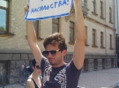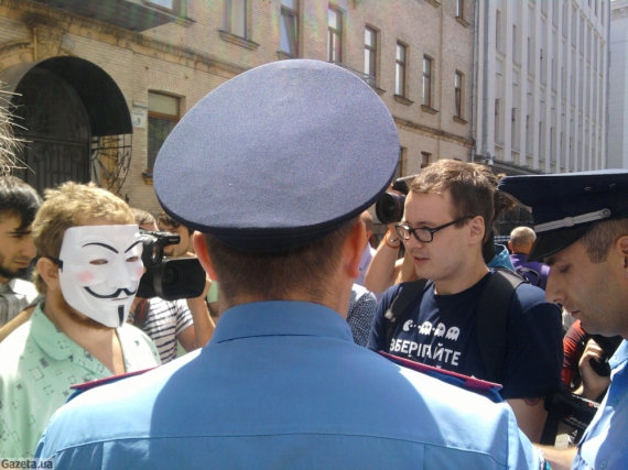 На акции присутствовали правозащитники. Один из них, 27-летний Михаил Лебедь, говорит, что неподалеку проходила еще одна акция - против автоматического судебного запрета акций на улицах Банковой и Лютеранской. Затем они объединились.