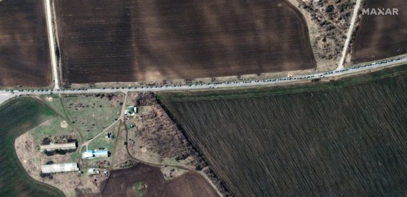 "Космоснимки показывают, что российские войска продолжают продвигаться на восток Украины. Военные развертывания врага наблюдались вдоль трассы 14к-34 и коридора, который ведет от городов Солотов и Валуйки на западе России к границе с Украиной", - говорится в твите.