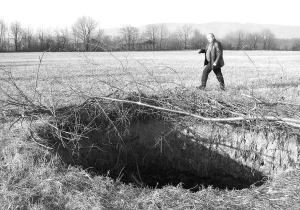 — Бывало, едет по полю комбайн или трактор и через секунду оказывается под землей, — вспоминает сельский голова. — Счастье, что ямы неглубокие, водителя и технику удается вытащить.