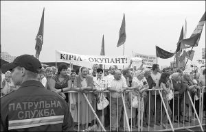 Встречу с иерархом заметно сократили из-за митинга протеста, организованного местной ячейкой всеукраинского объединения "Свобода". Пикетчики скандировали: "Кирил — оккупант, прочь московского попа", "Наш Патриарх — Филарет", "Независимому государству — независимую церковь".