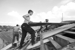 —Во время бури я был на работе. В доме сидел 79-летний отец. Испугался, но выйти не мог. Стояла черная стена, темнота, как ночью, — рассказывает. — Одна часть крыши была на огороде, вторая смята в гармошку. В первый же день пришли соседи. До вечера это все накрыли, было человек 15–20. Завтра должны привезти бляху. Из своего кармана должен выложить 20 тысяч гривен. А еще за работу заплатить. На все пойдет от 40 до 50 тысяч. От сельского совета не видел ни копейки. В первый день пришла комиссия, что-то переписали и на том точка.