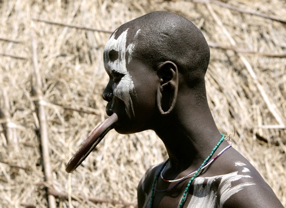 В эфиопском племени Сурма есть обычай, по которому девушке за некоторое время до свадьбы удаляют нижние зубы, прокалывают губу и вставляют в нее глиняный диск. Время от времени диск заменяют на аналогичный, но большего диаметра. Чем больше диаметр диска-тем больше приданное невесты, ведь именно диск символизирует уровень богатства семьи невесты.