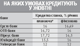 Например, фиксированная ставка для автокредитов составляет 16-16,5% годовых. Средства отдалживают только в гривне. Кредиты с "плавающей" ставкой - на 1, 5-2% дешевле. Проценты состоят из фиксированной ставки финучреждения - это 2-3% годовых и индекса UIRD: среднего уровня ставок по депозитам в Украине. Этот показатель для украинских банков определяет рейтинговое агентство "Томсон рейтерз". Пока этот индекс для гривневых кредитов равен 13,2% годовых. В сумме клиент платит банку 12-15,5% годовых.