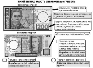 На руках стало больше поддельных банкнот номиналом 200 грн. Чаще всего попадаются старые, "синие" купюры 2001 года. У них меньше элементов защиты. Поэтому их легче размножить.