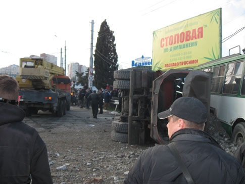 Как сообщили в Главном управлении МНС Украины в АР Крым, водитель грузовика допустил опрокидывание транспортного средства. В результате, груз (строительный мусор) с авто высыпался на проезжую часть и повредил автомобиль "MAZDA 3", который находился у края дороги. Водитель грузовика, дончанин (1954 г.р.) и водитель троллейбуса, житель Алушты (1968 г. р.) были зажаты в кабинах.