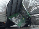 Вчера утром на остановке в районе пересечения улиц Заозерной и Мамина-Сибиряка мусоровоз КП "Коммунальник" заехал на частное подворье.