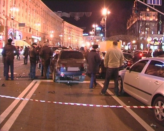 Напомним, в центре столицы столкнулись около десяти автомобилей, среди которых "Бентли" и "Мерседес". Авария произошла около 18.30. В столичной милиции заявили, что во время ДТП на пересечении улиц Крещатик и Прорезная пострадал сотрудник ГАИ.