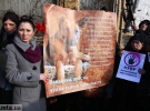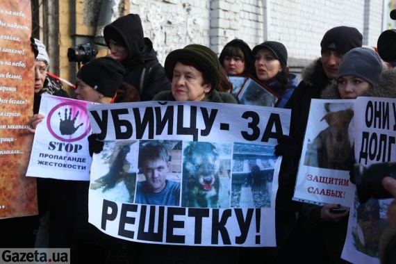В 14 часов возле здания суда собрались около двухсот зоозащитников и неравнодушных граждан. Люди держали в руках плакаты с фотографиями замученных животных "За что мы умирали в страшных муках" и надписями "Если садистов-убийц не остановить - следующей прольется и человеческая кровь", "Ведуле максимальное наказание - 5 лет".