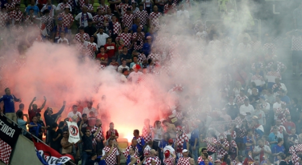 Ранее из-за брошенного на поле файер задержали 24-летнего хорвата. Это произошло во время матча Хорватия-Италия в Познани. Мужчине тоже может грозить 5 лет тюрьмы.