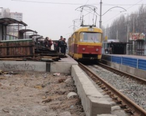 Около 12.15 на улице Борщаговской в Киеве сошел с рельсов скоростной трамвай с людьми, который двигался по первому маршруту.
