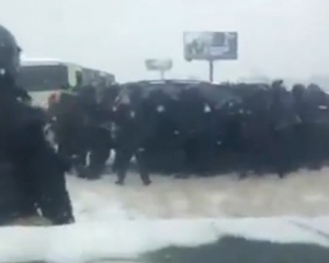 В Интернете появилось видео, на котором видно, как бойцы внутренних войск сбрасывают с трассы машины, которые блокируют движение их автобусов.