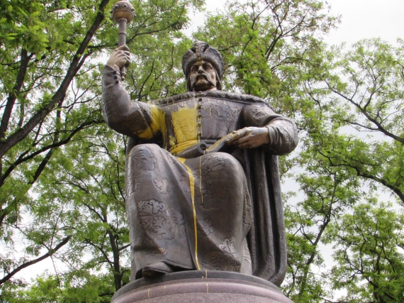 В Полтаве на Соборной площади облили краской единственный памятник Ивану Мазепе в Украине. Неизвестные бросили в него стеклянные бутылки.