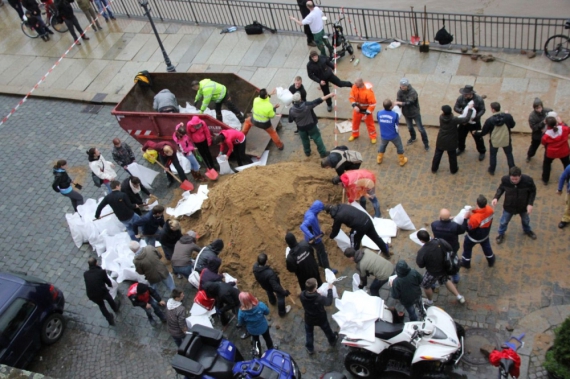 "Мешки с песком сдержат воду на время. В этом месте в самом центре выход к реке пологий беспрепятственный, поэтому вода уже на подходе к главным историческим объектам - храму Богоматери (Frauenkirche) и Кафедре (Kathedrale), а затем и к Цвингерк (Zwinger - музей классического искусства) и Опере легко может дойти, там равнина, нет никакого возвышения, - рассказывает один из работников спасательной бригады. - Наши бригады работают вдоль всей Эльбы, тут рядом в нескольких метрах строят временную дамбу. Главное сдержать воду в пределах города, где близкий доступ к домам".