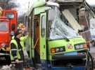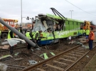 В польском городе Вроцлав столкнулись грузовой автомобиль и трамвай. Из-за сильного удара трамвай сошел с рельсов.