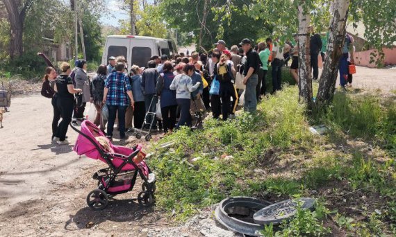 "Очередь за гуманитаркой. Рядом - открытый колодец, откуда люди набирают воду после экспериментов оккупантов с водоснабжением. В колодец постоянно попадает мусор. Люди вынуждены пить такую воду - другой нет. И все это на фоне тепла, солнца и зеленого города. Полная картина Мариуполя в двух фото", - рассказал советник мэра.