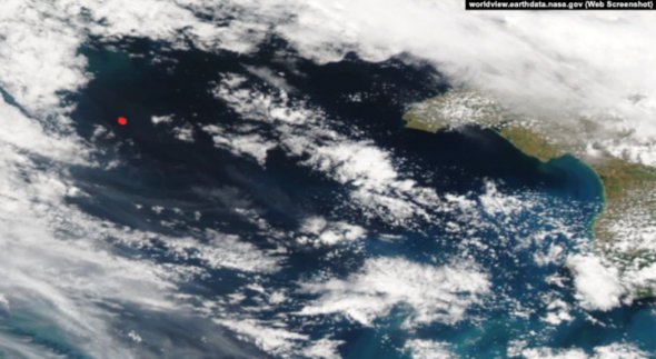 Об этом пожаре свидетельствуют спутниковые снимки NASA.