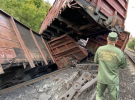 После взрыва железнодорожного полотна 11 вагонов и локомотив грузового поезда сошли с рельсов и перевернулись.